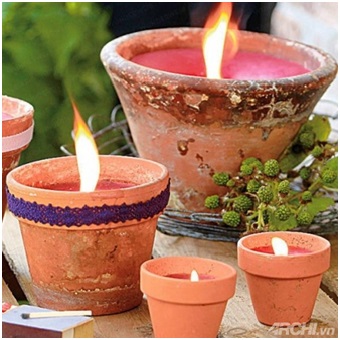 Bạn có thể lấy những chiếc chậu bằng gốm sứ bị bỏ quên trong góc vườn bấy lâu hay những chiếc xô chậu nhựa đầy màu sắc để làm đèn thắp nến. Rất đơn giản chỉ cần đặt một viên nến tealigh vào trong và bạn đã có những chiếc đèn rực rỡ và ấn tượng. Vẻ đẹp toát ra từ những thứ bình dị và mộc mạc luôn gây ấn tượng mạnh mẽ cho mọi người.