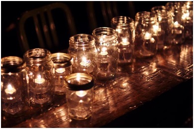 Trong nhà bạn có rất nhiều chai, lọ thuỷ tinh không dùng tới, vậy tại sao bạn lại không sử dụng chúng để làm những chiến đèn nến? Những chiếc lọ đủ kích cỡ khác nhau sẽ tạo ra cả một bộ sựu tập đèn nến, bạn có thể đặt chúng xuống thảm cỏ hoặc buộc dây thép và treo chúng lên cành cây, những chiếc đèn đung đưa theo làn gió trông thật đẹp mắt và tinh tế. Cũng với những chiếc lọ thủy tinh này bạn có thể bọc giấy kiếng hoặc sơn lên lọ những màu sắc khác nhau để những chiếc đèn thêm phần phong phú.